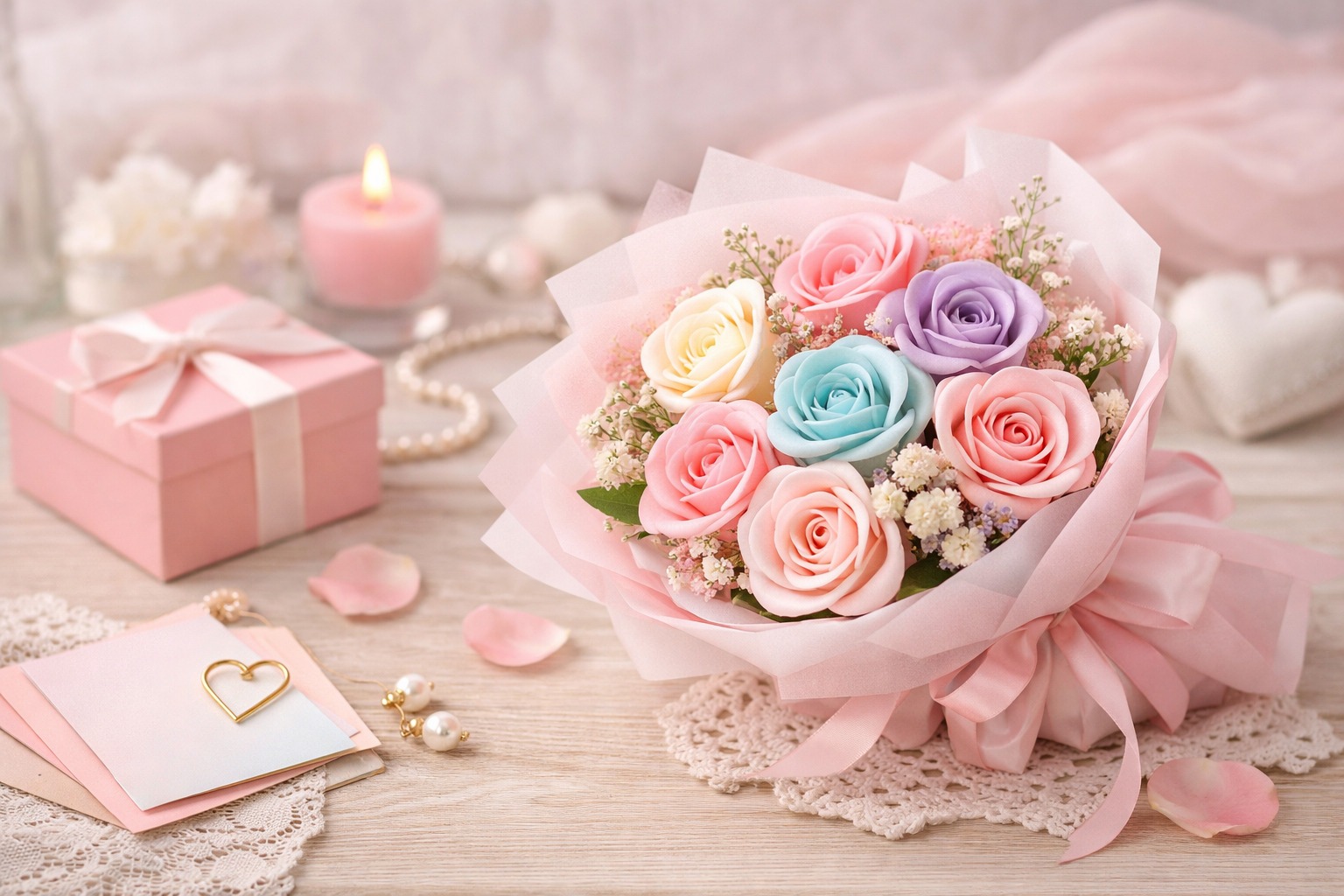 Ideea de a oferi un buchet de trandafiri de săpun pastel nu e nouă, dar a prins o formă tot mai rafinată în ultimii ani. S-a trecut de faza în care aceste flori arătau ca niște jucării parfumate dintr-un bazar. Astăzi, un buchet bine făcut poate fi aproape imposibil de deosebit de unul natural, cel puțin la prima vedere. Iar culorile pastel au adăugat un strat de finețe pe care alte variante nu reușesc să-l atingă.